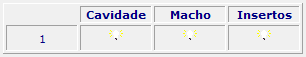 Após você ter registrado os sólidos como insertos/placas macho e cavidade, uma tabela que mostra os conjuntos de Cavidade/Macho/Insertos será exibida no assistente. Para verificar os itens, clique em cada
