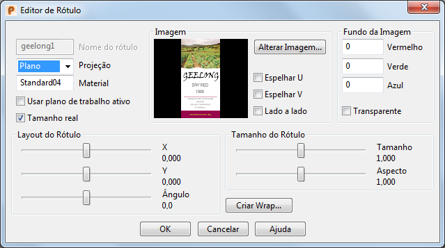 Tamanho do Rótulo — Ajuste o tamanho do rótulo utilizando as barras deslizantes. Os valores são proporções do espaço de projeção.