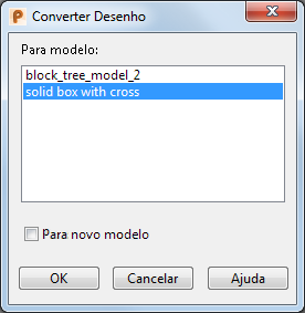 - Utilize a caixa de diálogo para converter o desenho e exportá-lo para o modelo, como segue: