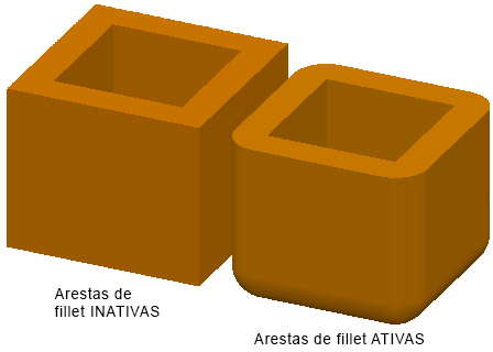 - Selecione a opção Fillet nas arestas para arredondar os cantos. Se as faces sofrerem offset para fora, cada face terá o mesmo valor de offset: