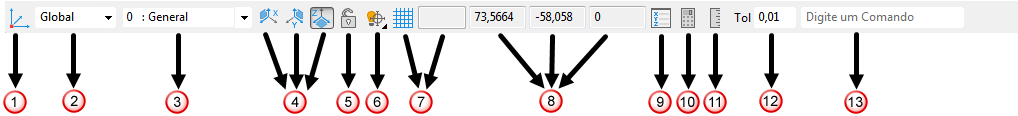 As coordenadas X, Y e Z do cursor são exibidas respectivamente. |