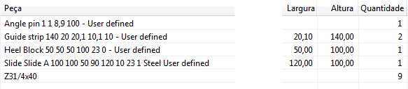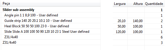 - Clique com o botão direito na submontagem e selecione Sintetizar no menu de contexto. A tabela é exibida em formato resumido: