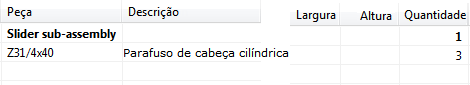 - Selecione Explodir para exibir a tabela com os itens da submontagem exibidos individualmente: