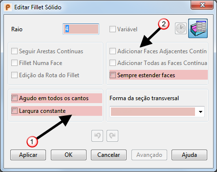 Este exemplo mostram como editar fillets múltiplos, porém os mesmos conceitos se aplicam a todas as famílias de figuras sólidas.