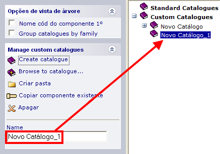 Para criar um catálogo ou pasta personalizada para classificar componentes por tipo: