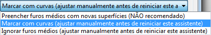 Estas são as opções disponíveis na lista suspensa de Furos Médios: