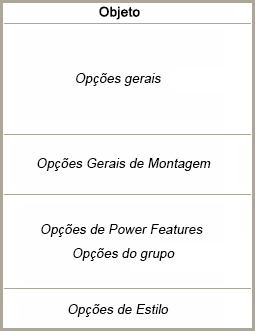 As Opções de Power Features e Grupo permitem gerar ou remover Power Features e adicionar ou remover componentes de grupos.