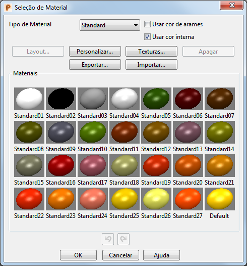 Nota: Para alterar o material padrão, verifique se não há objetos selecionados e repita as etapas de 3 a 5. O novo material será usado para o sombreamento de cor subsequente.