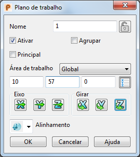 Vista — Selecione esta opção para alinhar o plano XY do plano de trabalho com a vista atual.