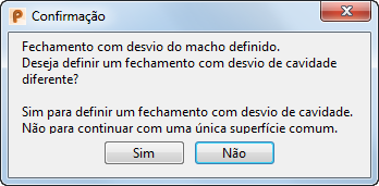 Sim — O formulário de superfície de fechamento com desvio é exibido novamente e o usuário pode criar uma segunda superfície para o inserto da cavidade.
