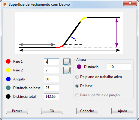 Uma superfície de fechamento é criada usando as configurações padrão. Utilize a página Criar superfície de fechamento para alterar as configurações de superfície de fechamento:
