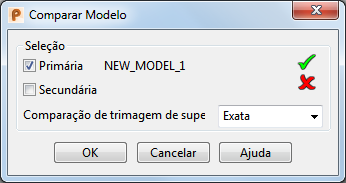 Primária — Selecione o modelo em que as diferenças serão exibidas. Quando a caixa de diálogo é exibida pela primeira vez, a seleção Primária é o modelo da janela gráfica ativa. Você pode alterar a seleção primária selecionando a opção Primária e clicando em outra janela gráfica. O ícone