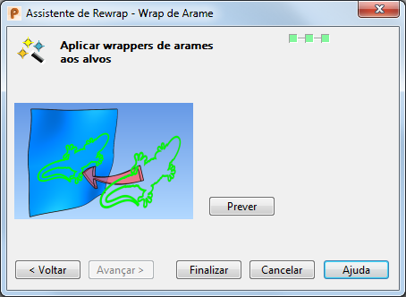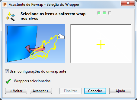 Uma superfície que sofreu unwrap anteriormente é reconhecida automaticamente quando você inicia o Assistente de Wrap. O Assistente de Wrap se torna o Assistente de Rewrap e orienta você pelo rewrap do item para o objeto-alvo: