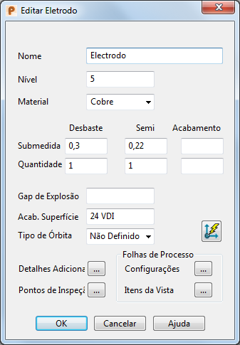 para exibir a caixa de diálogo Detalhes Adicionais do Eletrodo. Pode ser utilizado para atualizar as informações adicionais exibidas na folha de processo.