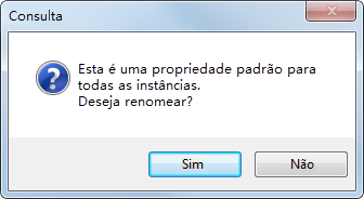 Diálogos de Informação ou Confirmação são exibidos se você tentar utilizar o diálogo Modificar Propriedades para apagar ou renomear uma propriedade caso essa ação possa ter consequências inesperadas.
