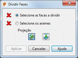 - Selecione uma opção de Projeção apropriada. Projetar arames ao longo da normal da face é a configuração padrão.