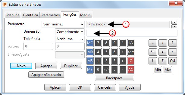 . Você também pode inserir um cálculo ou valor para um parâmetro.