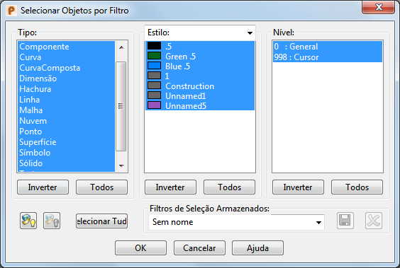 Modelos complexos podem ficar bagunçados, dificultando a seleção dos objetos com os quais você deseja trabalhar. Use o filtro de seleção para: