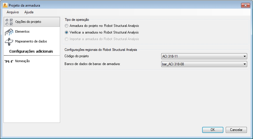 A seção das configurações regionais do Robot Structural Analysis contêm uma lista de códigos de projeto e os bancos de dados de vergalhões.