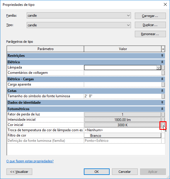 Nota: Você irá aninhar esta família na família hospedeira de candelabros e colocar múltiplas instâncias desta família (ou seja, múltiplas velas) no candelabro. Portanto, esta família deverá representar uma única origem de luz ou vela.