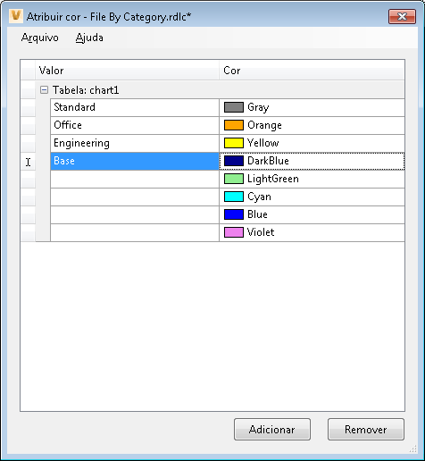 Quando é gerado um relatório que retorna um valor para o qual uma cor ainda não foi atribuída, o controle do relatório irá atribuir uma cor para o novo valor a partir de uma lista de cores predeterminada e reescreverá no modelo de relatório um nome e um valor para a nova cor. O novo valor e atribuição da cor são exibidas na caixa de diálogo Atribuir Cor onde o administrador pode atualizar o modelo ao atribuir uma cor para o novo valor.