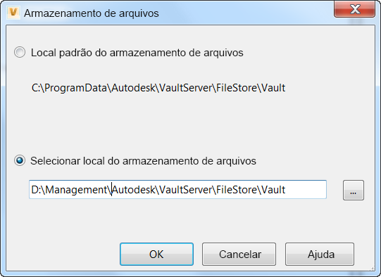 Ative um ou múltiplos Vaults para usar o Servidor de arquivos em vez do Autodesk Data Management Server para as atualizações no armazenamento de arquivos no diálogo Armazenamento de arquivos.