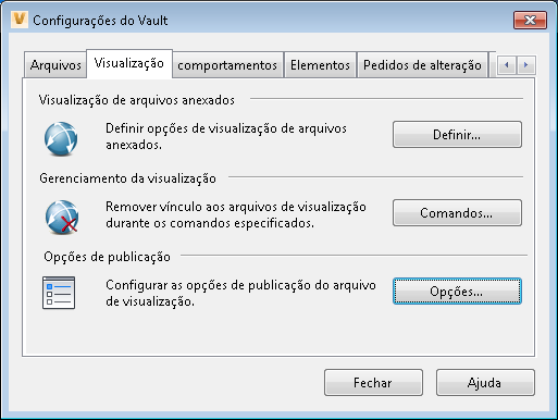 As opções de gerenciamento da visualização permitem especificar quais comandos quebram o vínculo entre um arquivo de dados no vault e seu arquivo de visualização correspondente.