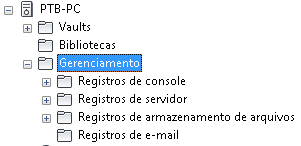 Acesse os registros de console, servidor, armazenamento de arquivos e e-mail na pasta Gerenciamento.
