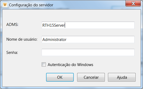 Administração. Marque a caixa de seleção Autenticação do Windows para utilizar as credenciais do Windows.