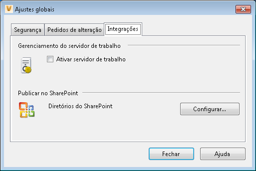 Ative o Job Server e ajuste as configurações para a publicação nos diretórios do SharePoint na guia Integrações da caixa de diálogo Configurações globais.