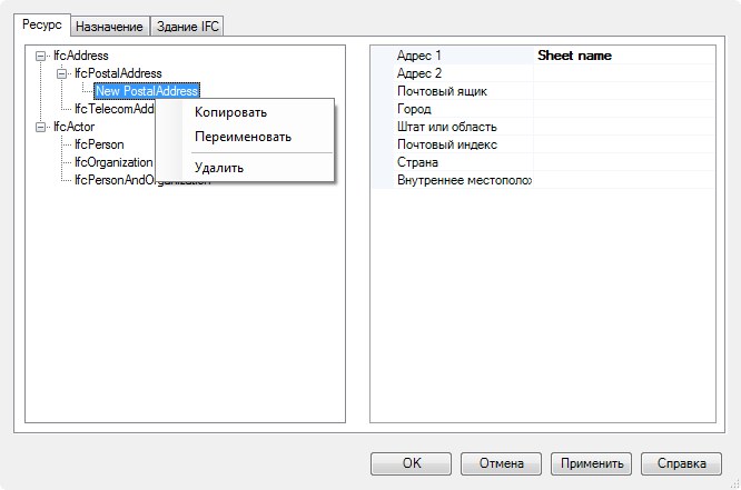 Создание и определение свойств экземпляра ресурса IFC