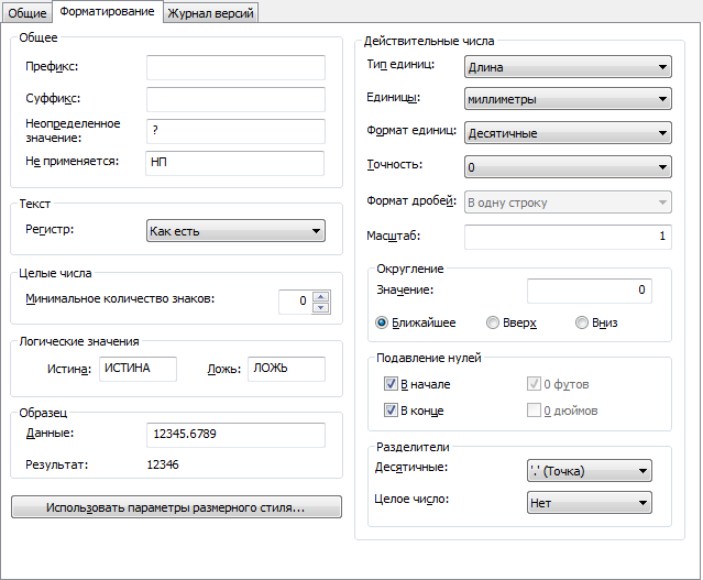 При применении формата данных к данным спецификации значение каждой характеристики отображается с использованием параметров, указанных для типа данных этой характеристики. Например, можно указать формат данных спецификации, в котором для значений размерности используется формат вещественных чисел, тогда как для примечаний используется текстовый формат.