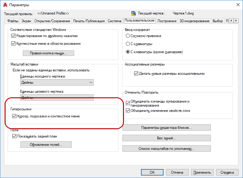 Включите отображения информации о гиперссылке на вкладке "Пользовательские установки" диалогового окна "Параметры".