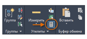 Ответить на этот вопрос так же просто, как ввести БК в командной строке AutoCAD или нажать кнопку «БыстрКальк» на панели «Утилиты» вкладки «Главная».