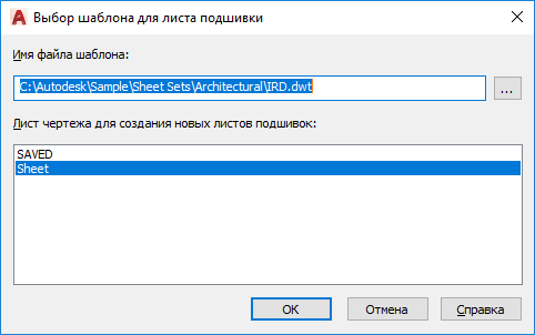 Задание имени и пути к файлу шаблона чертежа, который будет использоваться при создании новых листов.