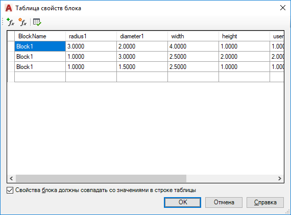 Нажатием комбинации клавиш SHIFT+ВВОД можно добавить новую строку для значения многострочного атрибута в таблице в диалоговом окне "Таблица свойств блока".