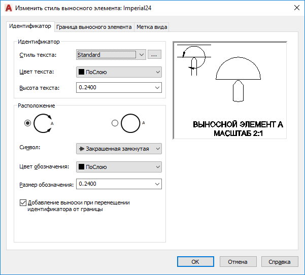 При выборе этого параметра граница выносного элемента будет соединена с идентификатором выноской при перемещении идентификатора с его исходного положения.