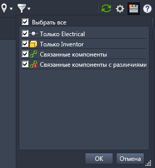 Компоненты можно отфильтровать на виде дерева компонентов в зависимости от статуса связи.