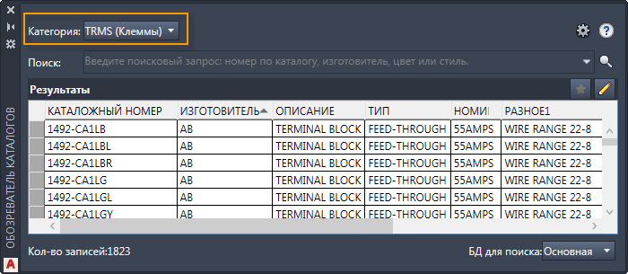 Вставка клемм осуществляется таким же образом, как и вставка других графических образов схем: из обозревателя каталогов или графического меню. При вставке из обозревателя каталогов необходимо выбрать категорию TRMS (клеммы).
