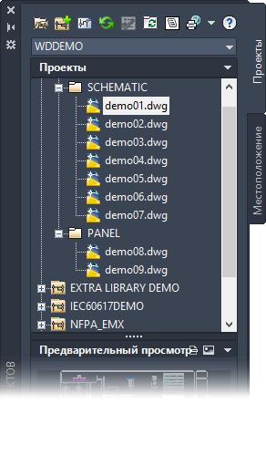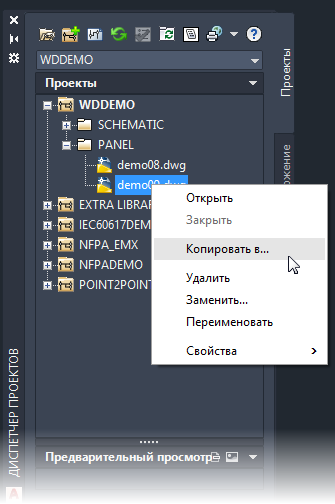 С помощью Диспетчера проектов можно скопировать отдельный чертеж из любого открытого проекта и добавить его в активный проект.