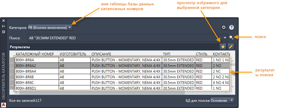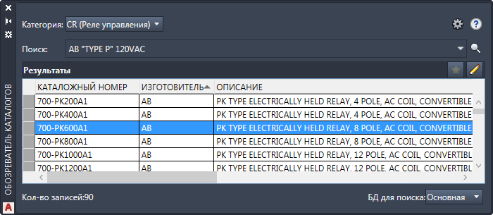 Каждый графический образ может иметь одно значение по главному каталогу и несколько значений по дополнительным каталогам, как это называется в AutoCAD Electrical toolset. Можно отредактировать компонент для добавления, изменения или удаления назначенных значений по каталогу.