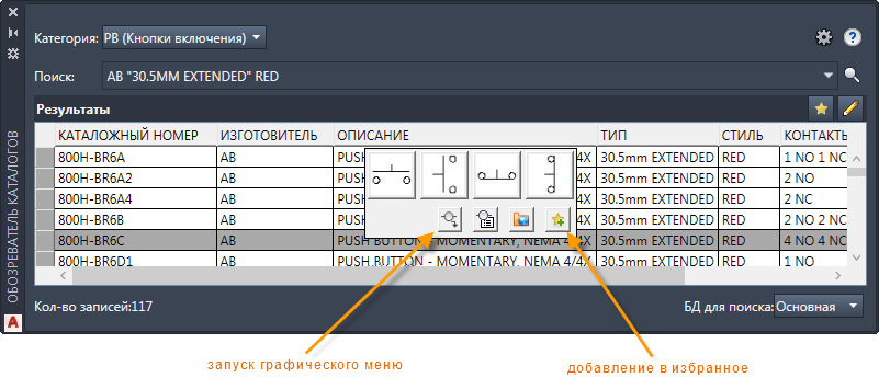 Если необходимый графический образ еще не связан с номером по каталогу, для его вставки можно открыть графическое меню непосредственно из обозревателя каталогов. С этого момента графический образ будет связан с данным номером по каталогу. Если это значение по каталогу планируется использовать часто, добавьте его в избранные.