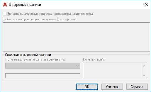 Диалоговое окно "Цифровые подписи" (команда)