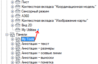 Новая вкладка (с именем "Новая вкладка") помещается внизу узла "Вкладки".