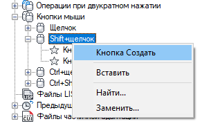 Нажатием правой кнопки мыши выберите раздел, относящийся к кнопкам мыши. Выберите "Кнопка Создать".