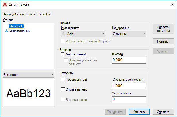 Прим.: Если пользователь изменил ориентацию или шрифт для существующего стиля текста, все использующие его текстовые объекты изменяются при следующей регенерации чертежа.