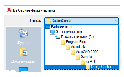 - Перейдите в папку «Центр управления», где хранятся различные примеры чертежей.