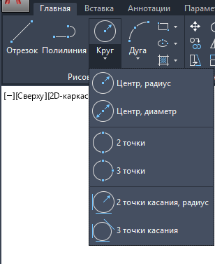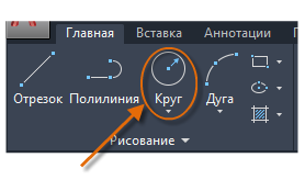 По умолчанию команда КРУГ задает центральную точку и радиус.
