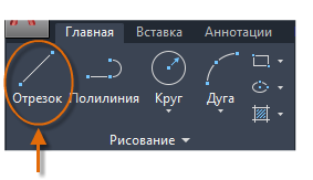 Линия является наиболее простым и часто используемым объектом в чертежах AutoCAD. Для создания отрезка щелкните инструмент "Отрезок".