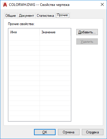 Список заданных пользователем имен и значений свойств текущего чертежа.
